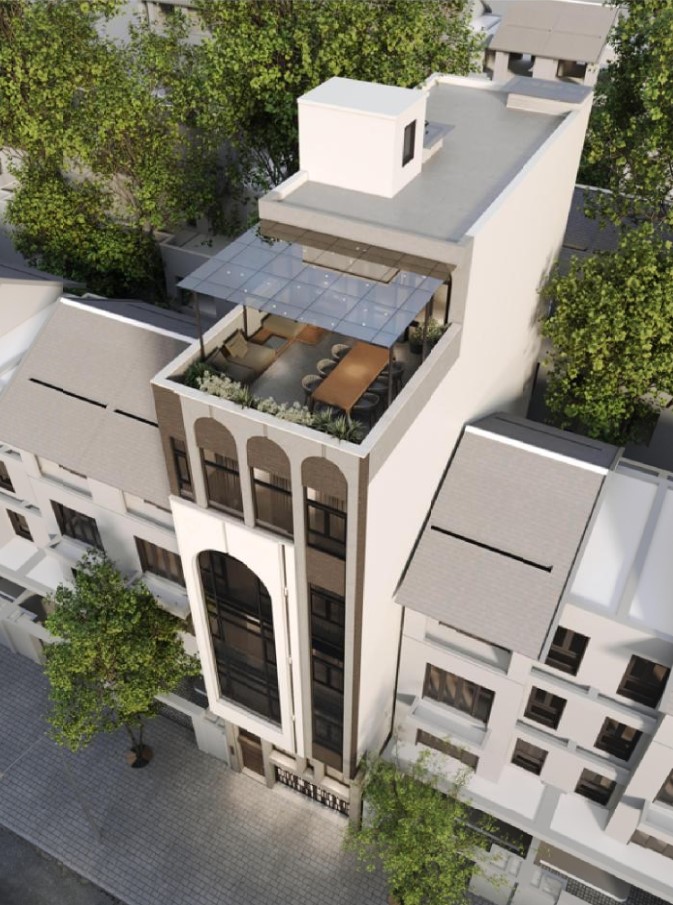 Nhà phố được thiết kế xây dựng trên diện tích đất 100m2, mặt tiền 6m với quy mô 5 tầng 1 lửng 1 tum. Công trình là sản phẩm thiết kế của Công ty kiến trúc Artéco, CÔNG TY TNHH TƯ VẤN THI CÔNG VÀ XÂY DỰNG TRƯỜNG PHÁT tiếp tục được chủ đầu tư tín nhiệm, uỷ thác triển khai thi công dưới dạng hợp đồng Xây nhà trọn gói phần thô.