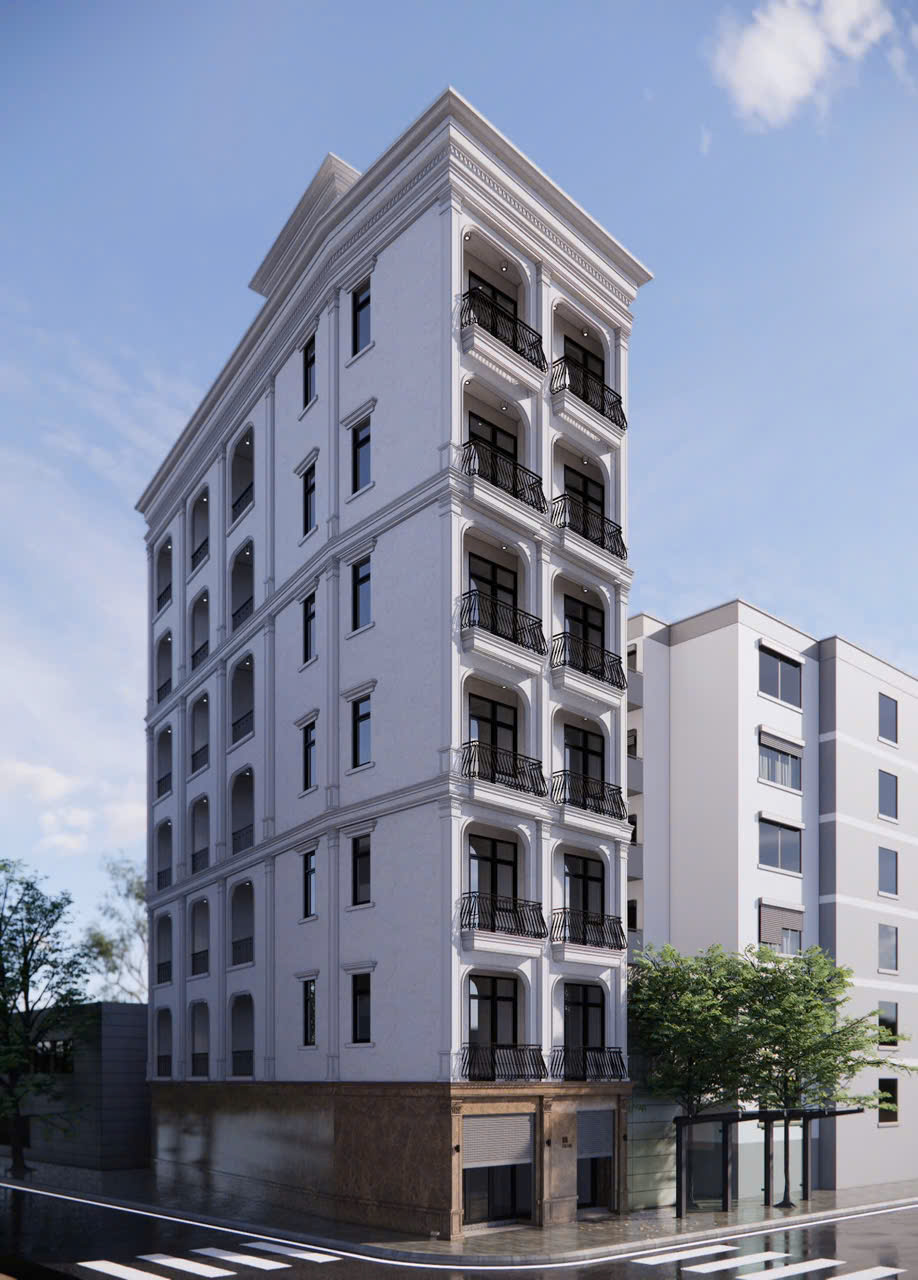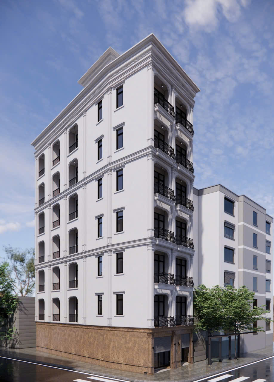 Dự án nổi bật với quy mô nhiều tầng, nằm trên lô đất góc đặc trưng của khu vực, đòi hỏi sự tính toán tỉ mỉ từ khâu thiết kế đến thi công thực tế.