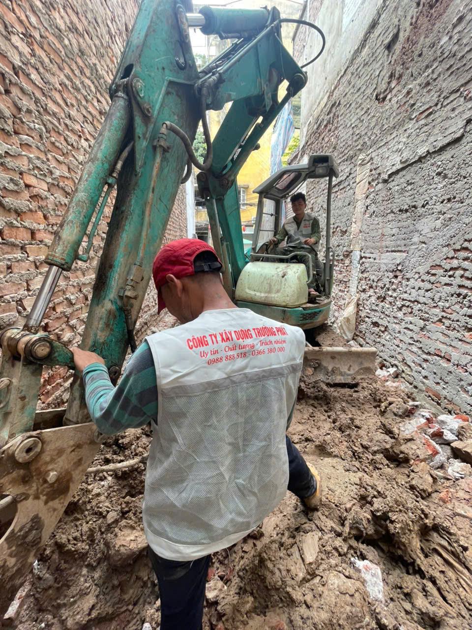 2. Đào Móng và Dọn dẹp: Việc sử dụng máy đào loại nhỏ giúp Trường Phát linh hoạt xử lý mặt bằng và đào móng trong không gian hạn chế, đảm bảo tiến độ ngay cả trong điều kiện mặt bằng lầy lội, chật hẹp.