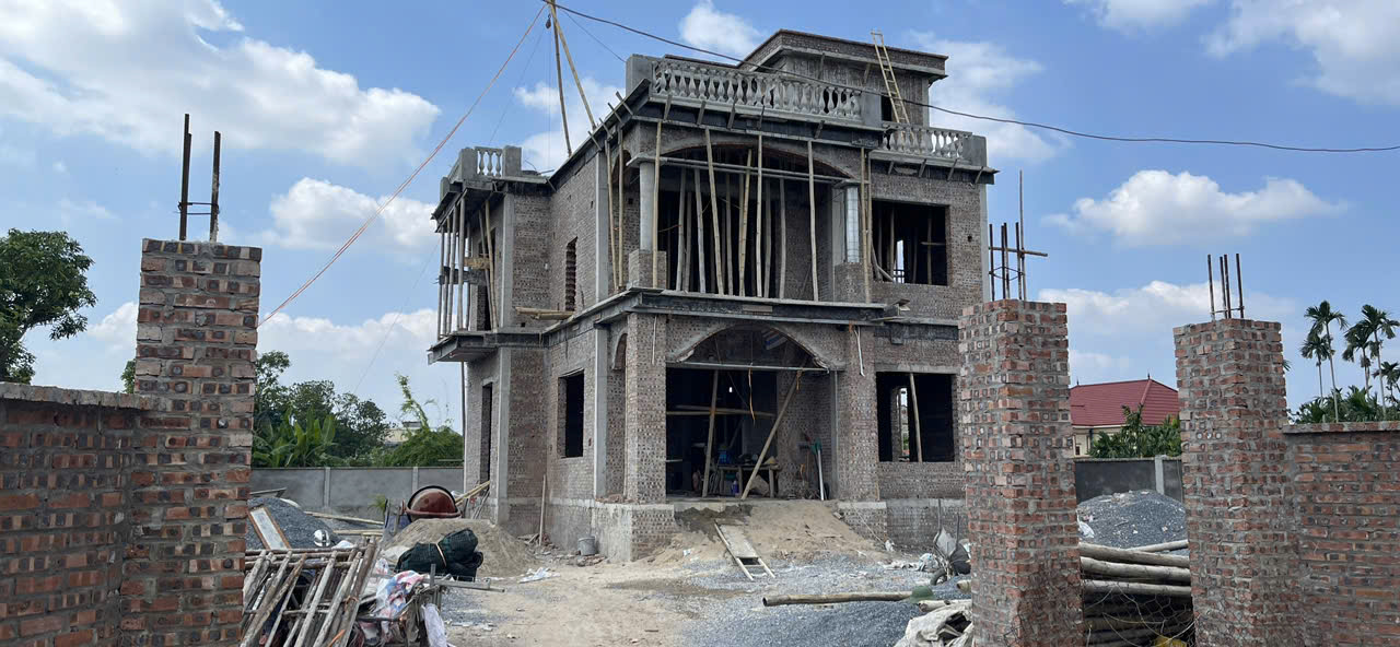 • Kết cấu kiên cố: Phần khung nhà đã được xây dựng vững chắc với hệ thống tường gạch đồng đều, đảm bảo khả năng chịu lực tối ưu.